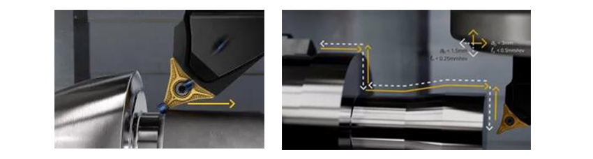 позволяет выполнять точение во всех направлениях – продольную обработку,