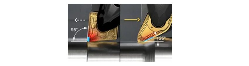 Небольшой главный угол в плане создаёт тонкую и широкую стружку, распределяет
